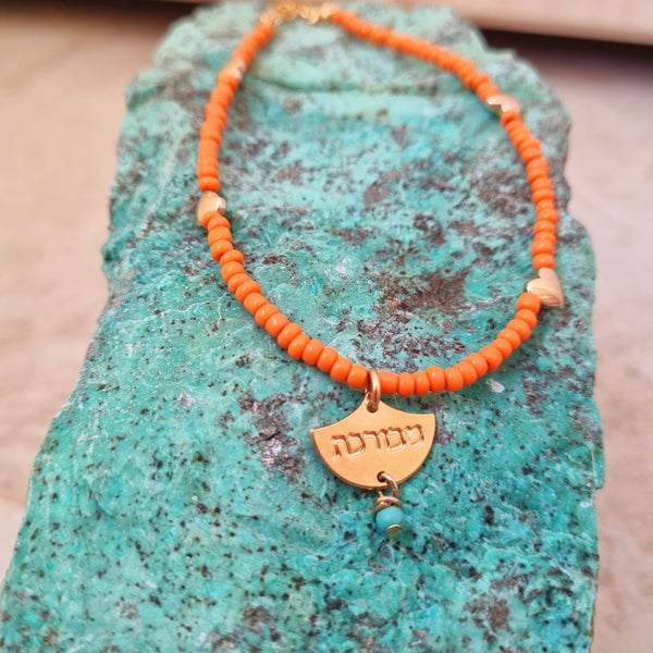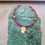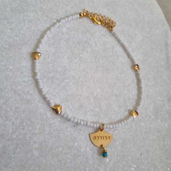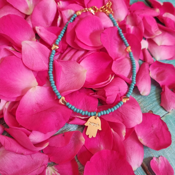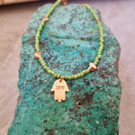 צמיד רגל או יד צבעוני בכל צבע שתבחרי, עשוי חרוזים והתליון בציפוי זהב