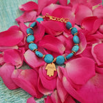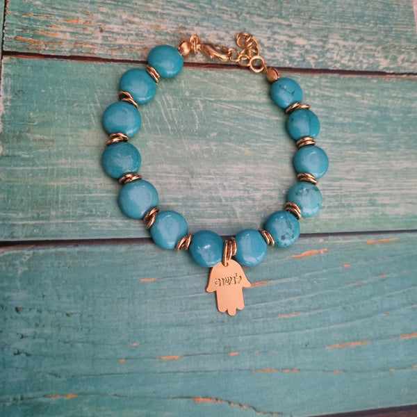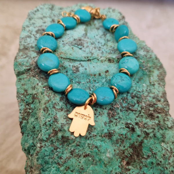צמיד עם אבני חן היולייט עם תליון חמסה בשילוב החריטה= לנשום או שקט